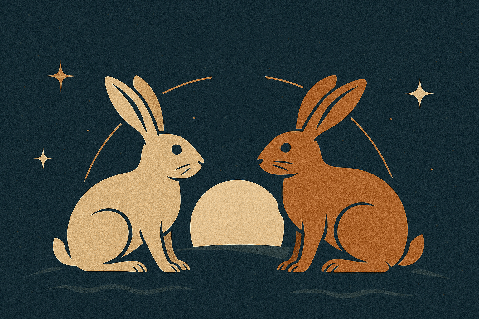 Dans la mythologie chinoise, le Lapin lunaire broie les élixirs d’immortalité au clair de lune. Signe de paix, de grâce et de générosité, il appartient à l’élément Bois et incarne le Yin suprême : réceptif, fin, élégant. Il évoque la capacité de guérison par l’écoute, l’art de la discrétion, et l’amour du beau sous toutes ses formes.